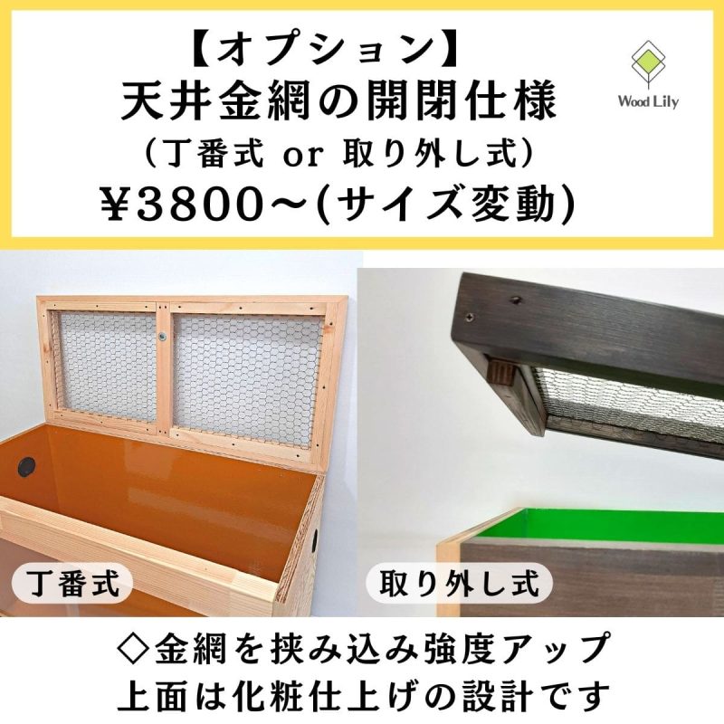 | ケージサイズ | 丁番式 or 取り外し式 | 2枚扉:丁番式 or 取り外し式 |